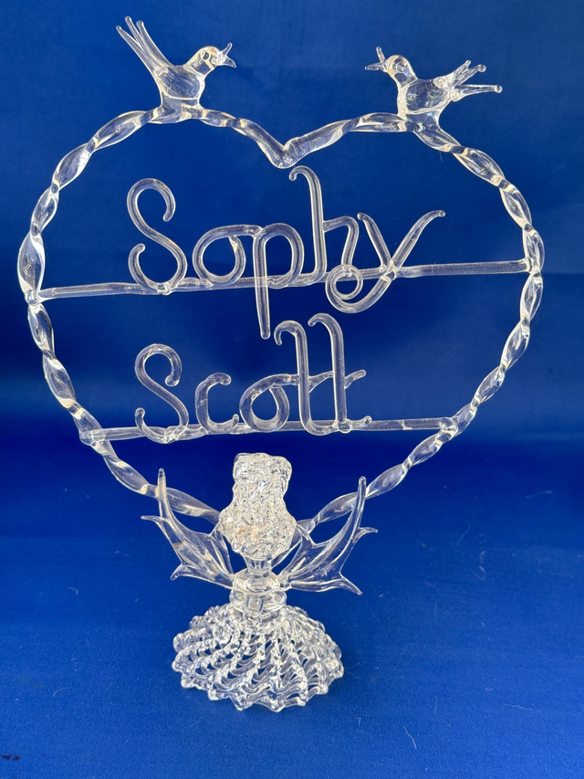 Thistle heart with 2 names can be clear or coloured